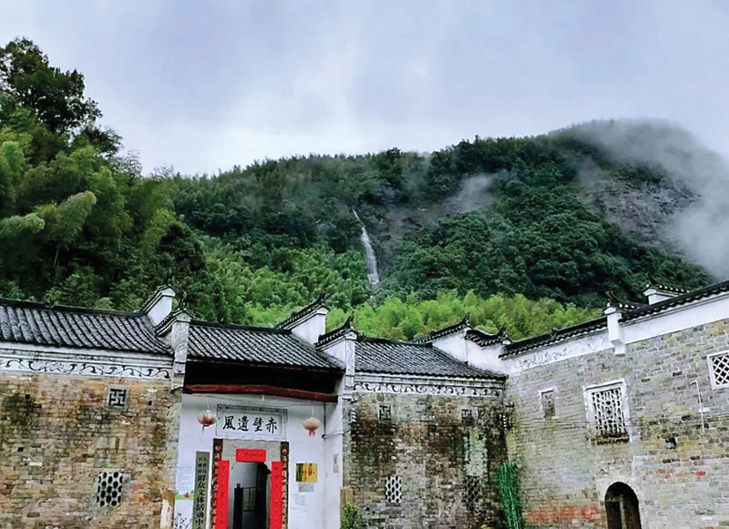 大屋四面环山,三面环水,前面三重山,伏案笔架山,后面三重山,背靠青龙山,门前鸳鸯水,世外有桃园。“赤壁遗风”:“遗风”是前代或前代人遗留下来的风教。三国赤壁之战,曹操率领八十三万人马下江南大败而去,当时周瑜是水陆大都督战败曹军,大获全胜。这里居住的是周瑜后裔,故叫“赤壁遗风”。